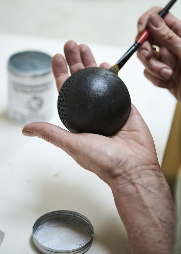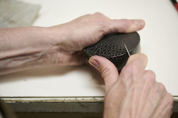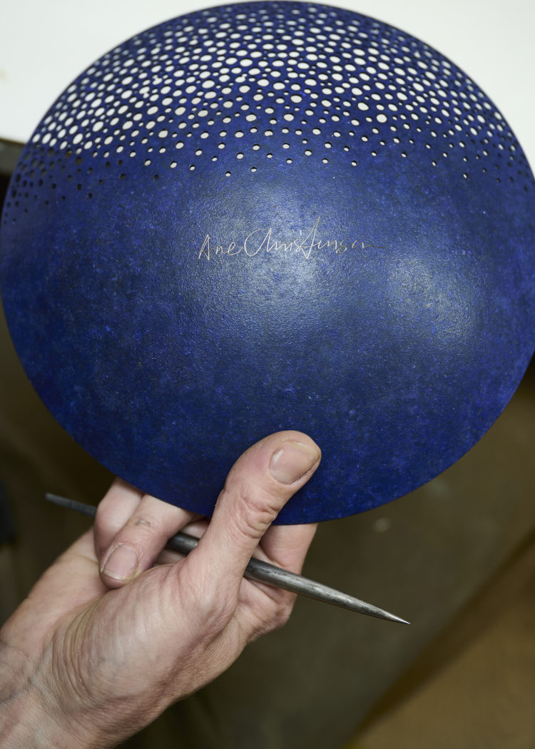 "As I first trained in jewellery, my technical approach in making is like that of a jeweller. Though my work has the scale of silversmithing, I never use hand raising or planishing in my work like a traditional silversmith does”. The elements of the crumbling bowls appearing to be eroded or weathered away are achieved through multiple drilling using a pillar drill, starting with larger holes and gradually decreasing in size. The key according to Christensen is knowing when to stop. "It's quite a meditative process, but every hole is a decision."