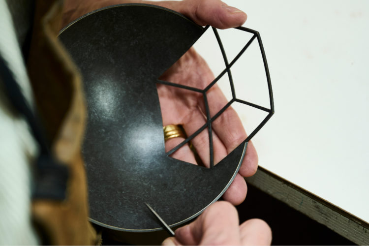 The maker comes from the Scandinavian school of thought where form follows function. "I am not a natural provocateur and it took me a while to evolve a more abstract language and give my practice a more sculptural focus” Having moved away from functionality in her practice, her heritage is still her richest source of inspiration. “Due to its climate and seasons, there is a deeply rooted anticipation and celebration of light in the Scandinavian culture, which is also my greatest source of inspiration. Metal can be a dense, heavy and often dark material and my challenge is always how to break the surface and get the light in. All my work explores the presence and absence of light and the shadows cast.”