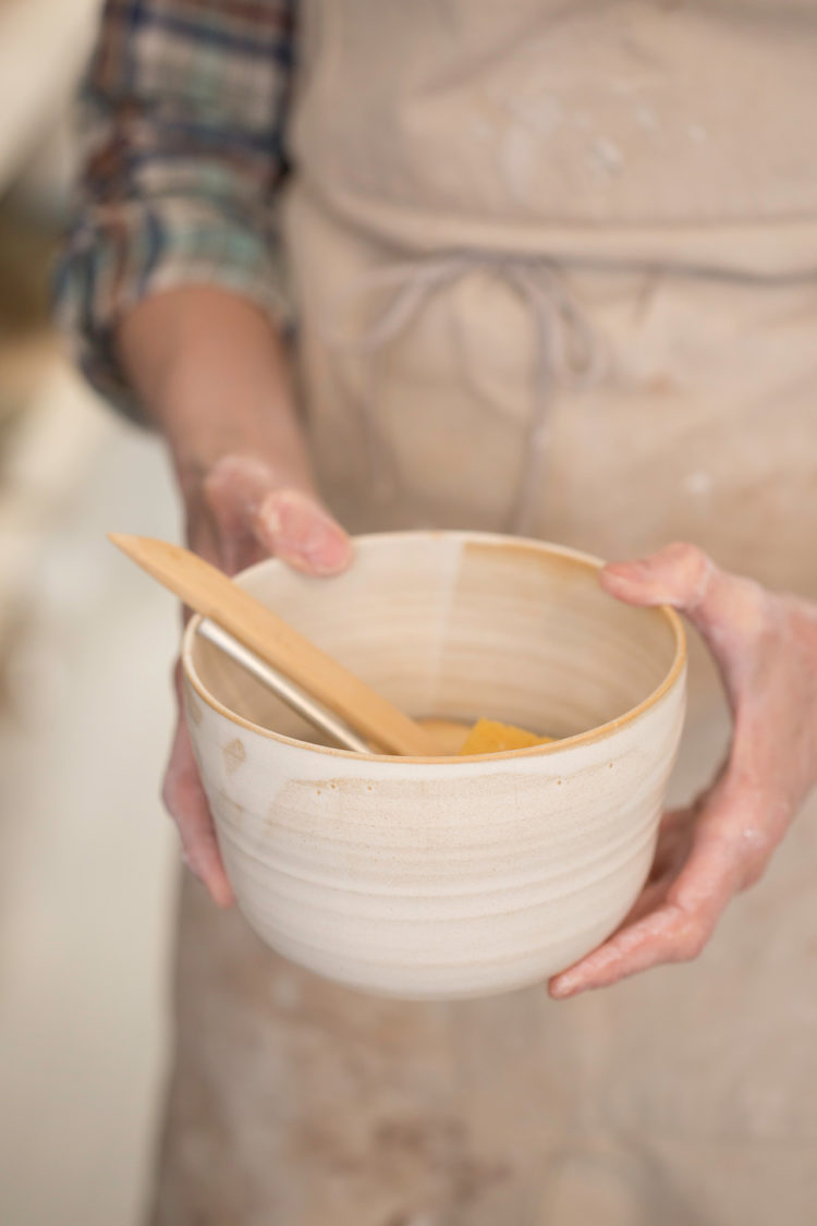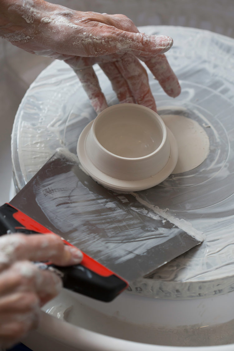 “Usually I put some clay on the wheel and see what happens and where it wants to go. I don’t know how it will turn out and I quite like it that way. I was taught to knead the clay in a Japanese way called 'kikumomi' which takes the air out of it so there are no bubbles inside. For a bowl it takes around 3 minutes for a 500g weight, but I make pieces up to 5kg although not any larger than that currently.”