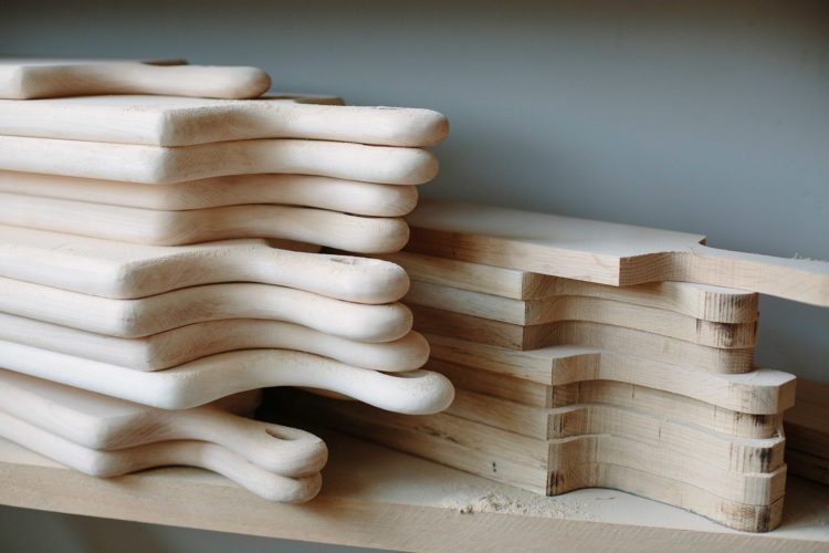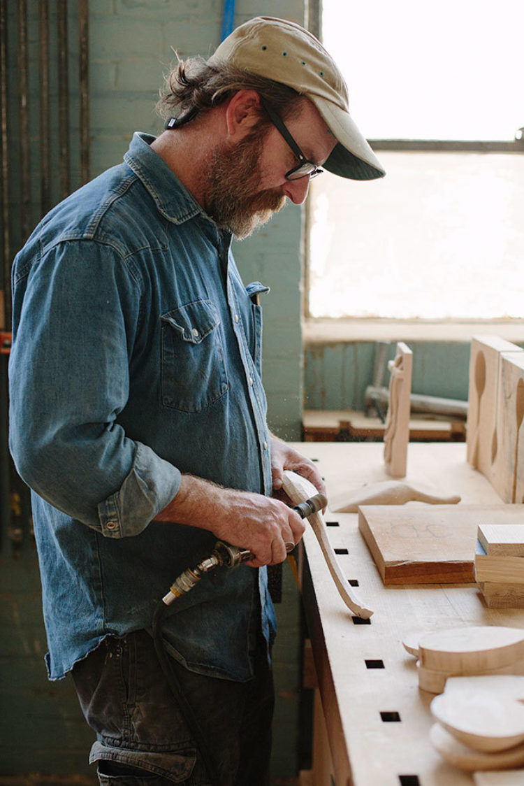 “Designing and making are the same process,”Josh says. That’s a quality of the work that keeps him coming back. Using a lathe – a tool similar to a potter’s wheel but horizontal, and for wood – Josh chisels away until he finds the right form. “I can affect and change the design readily while I’m making it, and that connection is really important.”