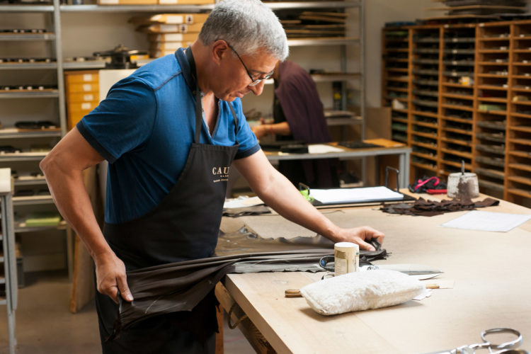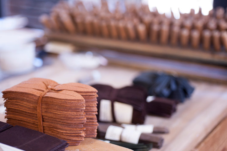 As the oldest glove manufacture still operating in Millau, Maison Causse produces 25,000 pairs of gloves each year, created by a design team and 40 artisans. Gloves are cut by hand and the linings – silk, cashmere, and sheepskin – are all made from natural fabrics. One pair of gloves can take over a week to make.
