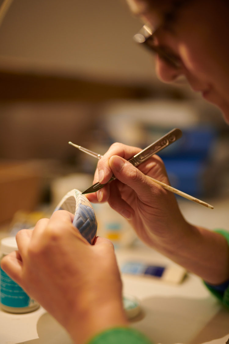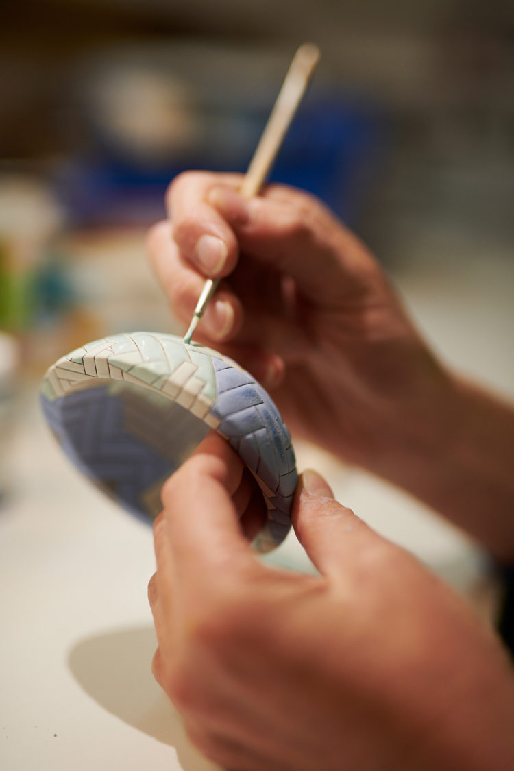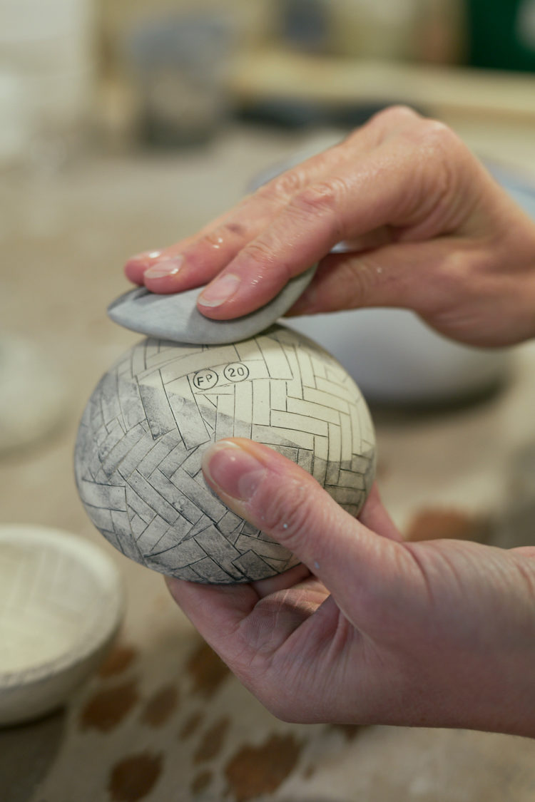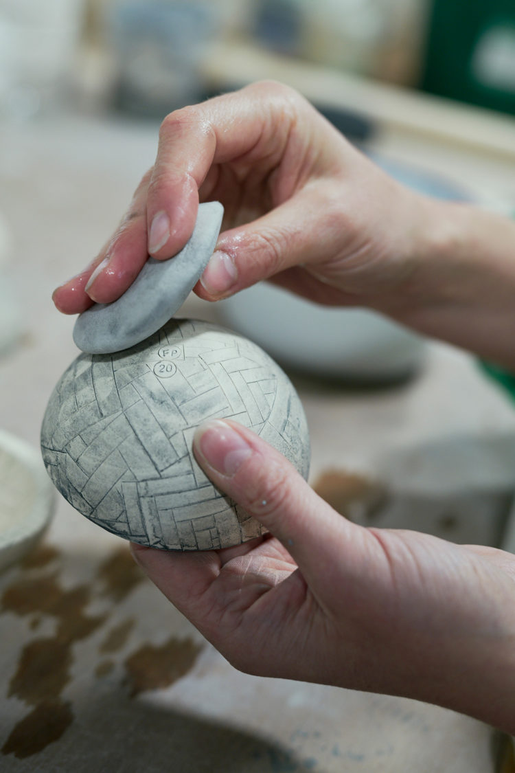 She imagined a future in textile design, but while completing an Art Foundation course, she was steered towards ceramics by acclaimed Raku artist David Roberts. But her fascination with decorative art has never left; “pattern and drawing are still very much at the heart of my practice,” says Priest.