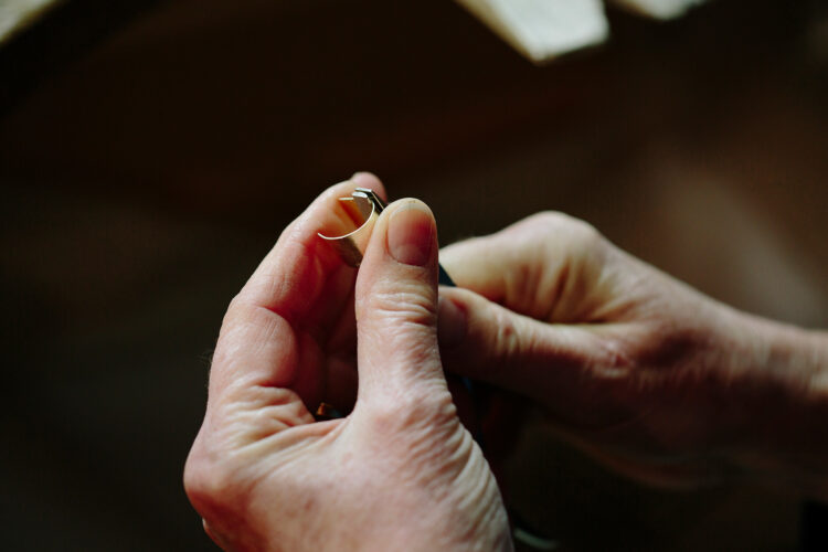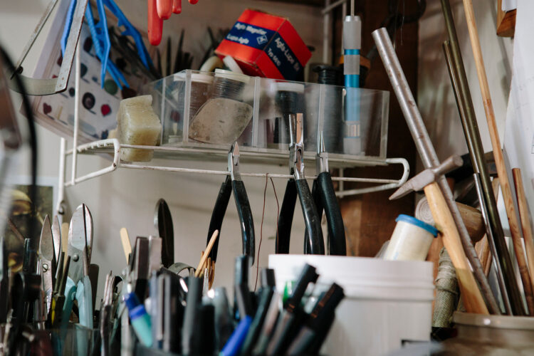 She started making pieces at home when her daughters were young. “The marvellous thing about jewellery making is that you can work in a very small space – I had a bench pin with a clamp on my kitchen table. That was enough.”