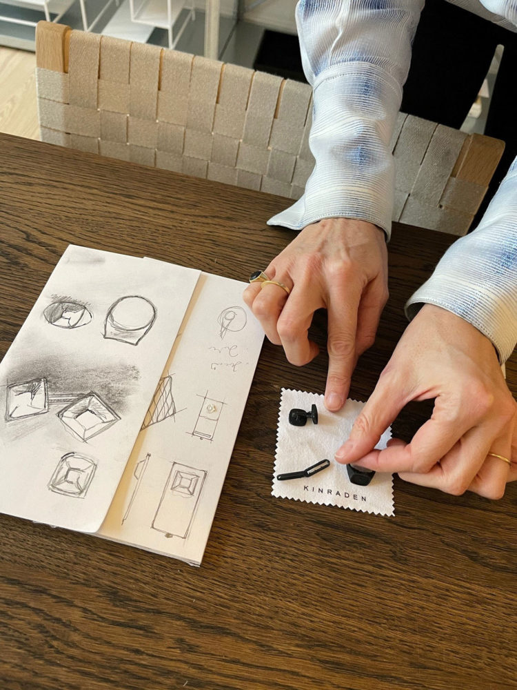Launching Kinraden, a jewellery brand which explores a minimalist aesthetic, sprang from a growing curiosity to explore another design medium and the opportunity to work with different materials — in this instance, black Mpingo heartwood “diamonds” from certified forests, and recycled gold and silver — a way to challenge the jewellery business. “There’s no reason to mine any more gold or silver, there’s enough of it out there. I also wanted to figure out how I could create something relevant for longer. And for me that was really fascinating, it was like creating a small building.”