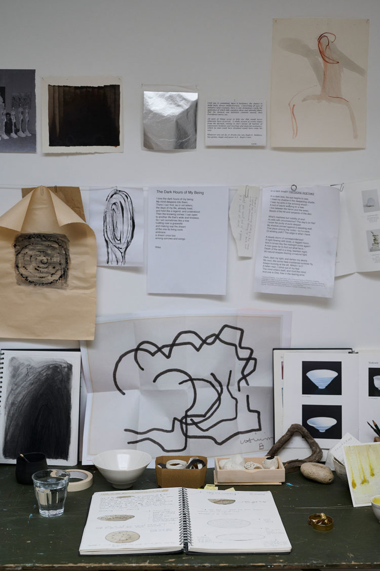 “I have broad influences, but particularly turn to fine art and artists such as Cy Twombly, Isamu Noguchi, Christopher Le Brun and Louise Bourgeois for the expression of particular qualities that inspire my work. I also look at pottery and find inspiration from all periods of its history. Swimming in the sea, walking the land, and the poetry of Rilke, Peter Balakian, and the New Yorker poetry podcast (a staple of studio listening), are hugely important to me.”