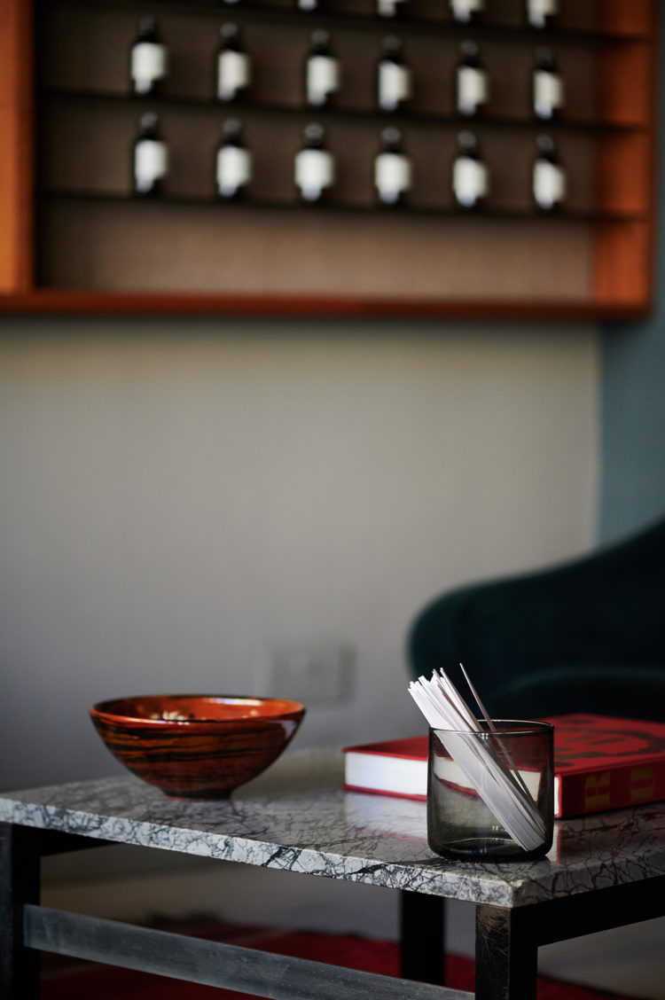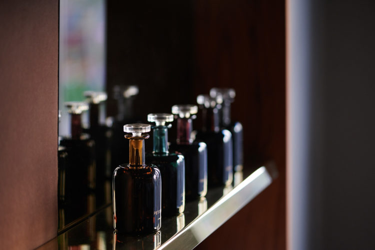 The attention to detail extends to the bottles that are hand-blown by glassmaker Michael Ruh. “When you’re going to the best, they have a process and you have to work with that,” she says. “and I enjoy learning from and collaborating with other creatives.”